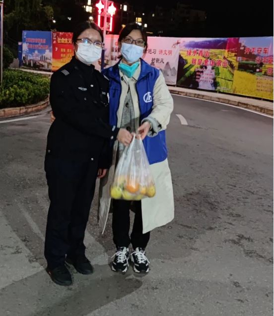 隨時可以感受到的抗疫愛心“勇動”??偛坑须y,分公司支援。公司黨委心系卡點值守志愿者,面對著防疫物資緊缺的情況,火速聯(lián)系分公司為大家配備了防護服、N95口罩、手套、酒精消毒噴霧、免洗手凝膠等防疫物資,為疫情防控提供了強有力的防疫保障;莫名的小姐姐親自送桔子到卡點,輕聲細語的一句“你們辛苦了”,聽著暖心啊!百貨店店員送來的礦泉水,喝著心里真甜!值守人員將隨身攜帶的一盒降壓藥給因?qū)嵤┓饪囟荒芡獬鲑徺I的小伙子救急,小伙子到商店買了一包香煙硬要塞給我們的值守人員,還不好意思地說:“太謝謝你了”!一個非要讓收下,一個非不愿收,二人相互推辭著……幸福感爆棚啦!用香煙表示感謝,在我看來或許是吸煙人士之間在這個特殊時期最普通但卻是最真摯的表達吧!工作人員親手為卡點值守志愿者送來愛心工作餐;一群不知名的小伙子們積極主動加入民兵志愿者和我們工作人員的隊伍,一起完成了近1600份政府為住戶們配送的生活物資后,悄然離開……。